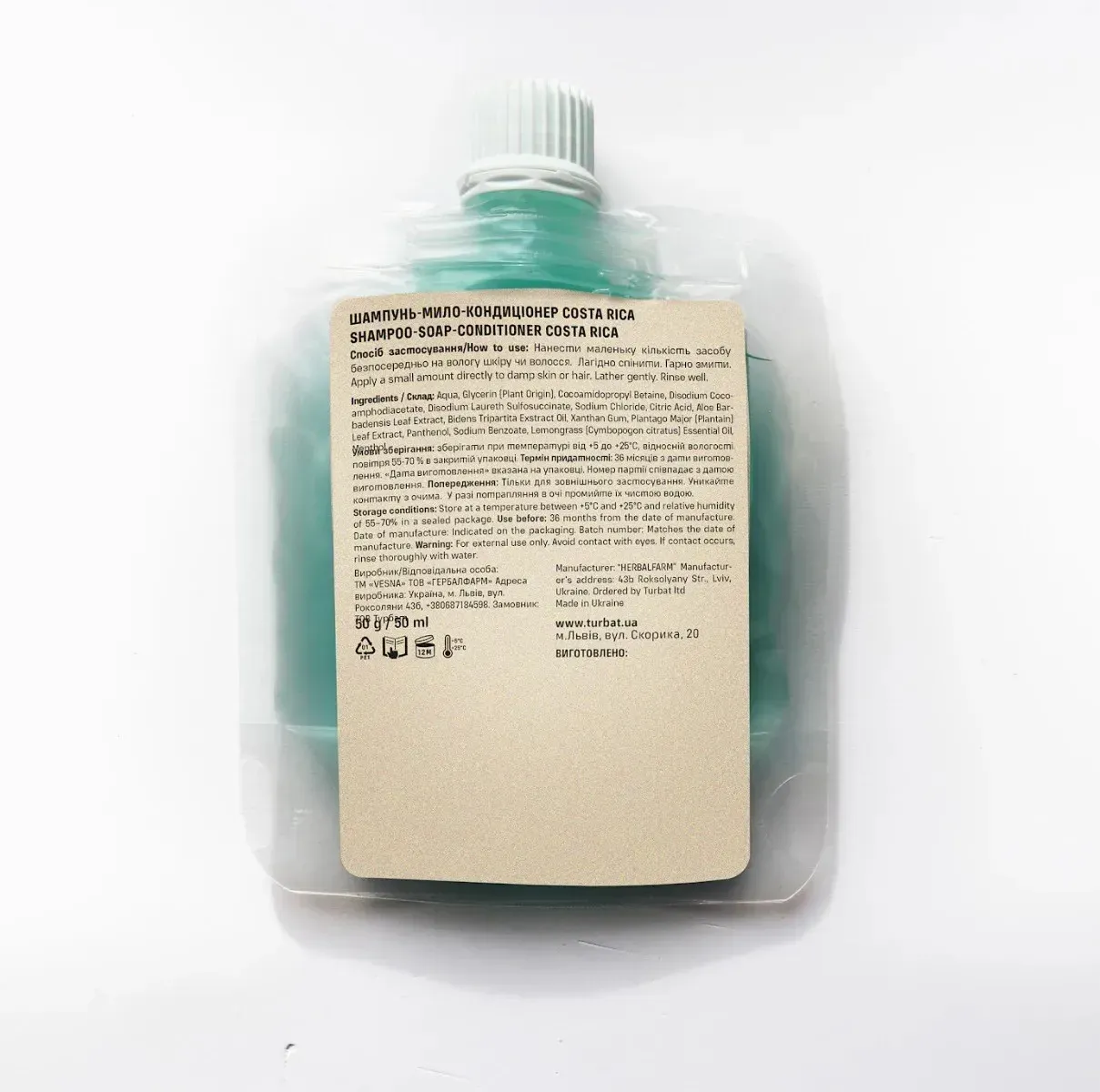 Пауч-рефіл для перезаправки шампуню-мила-кондиціонера Costa Rica — екологічне рішення для легких подорожей. Формат Refill дозволяє поповнити багаторазову ємність Costa Rica перед наступною мандрівкою або взяти запас засобу для тривалих подорожей.